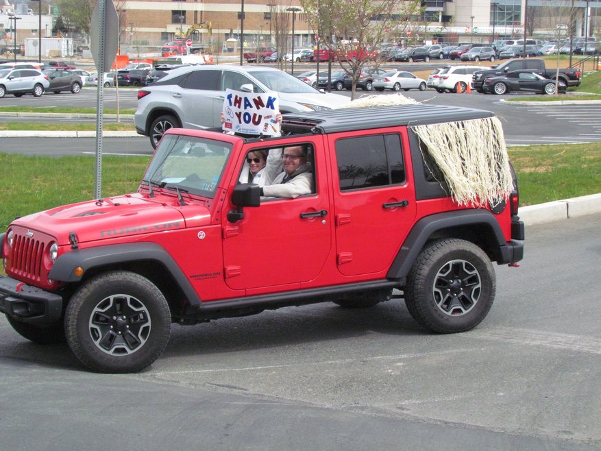 But it wasn’t just doctors, nurses, first responders and other hospital workers who caught up with Friday’s Jeep parade. It also attracted the attention of hospital patients, and made an impression on those hospital workers who were in the parade as well.