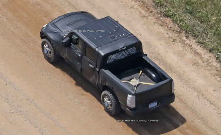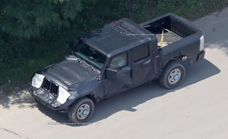 While the vehicle is heavily camouflaged, it definitely does not bear any resemblance to the midsize Comanche concept released for the Easter Jeep Safari earlier this year, as some had feared.