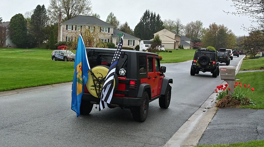Sunday’s caravan was organized by The Jeepers Back the Blue Foundation, an organization created following Ballard’s death to honor law enforcement officers. The group has hosted a Jeepers Back the Blue Jamboree event the past three years at different Delaware locations, and has raised more than $81,000 the past two years alone which went to families of fallen police officers and scholarship funds for the children of law enforcement officers.
