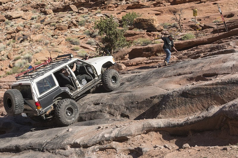 Another was a slightly challenging incline stretch of slickrock, broken up by a somewhat deep channel that forced drivers to put their passenger tire high on the rock to overcome, while walking up.