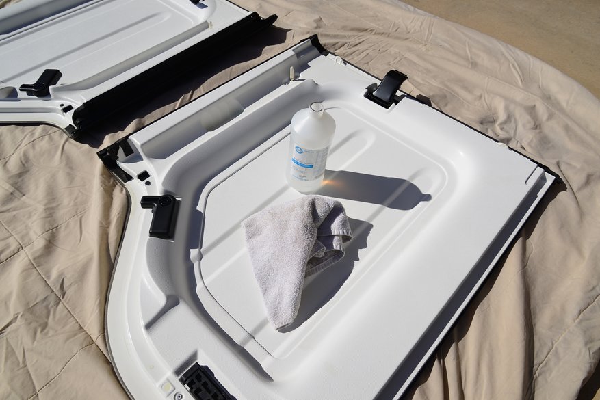 Now, on to the rear panels. Clean the roof with alcohol and test fit the panels before removing the backing tape. Then, remove the backing tape and press in place as you did up front. An assistant will make installation easier when placing the panels and pressing them on, although I did it by myself.