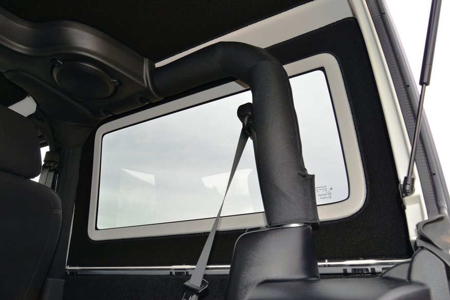 In the field, the headliner with side window panels made things a little quieter and the temperature in the Wrangler was noticeably better. Before installing the headliner, place your hands on the bare hardtop interior and notice how cold or hot it is when temps are extreme. Once the headliner’s installed, feel the top. Temperature is mild and the HVAC system is able to do its job.