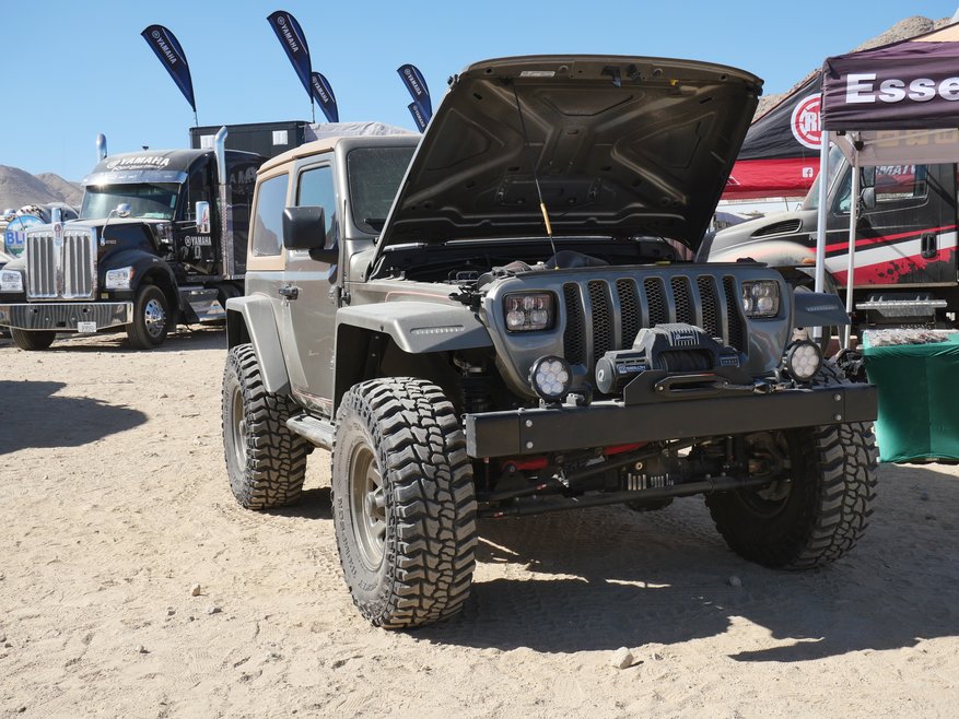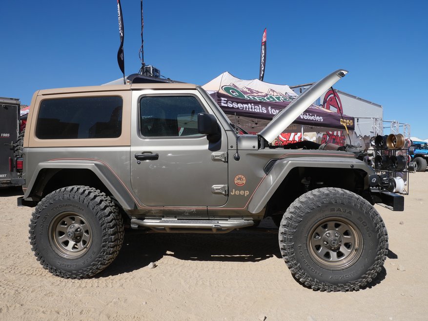 And it was a question directed at a Wrangler dressed up in metallic khaki clothes that, er, sort of looked like a new JL-style vehicle, but sported a face with square headlights and an engine that roared unlike any production 2.0-liter or 3.6-liter version around.
