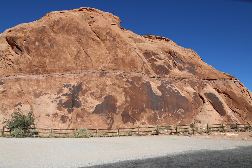 This site is called Golf Course Rock Art, and is just one of scores of locations all over the Moab area that have these type of depictions. Some you need to hike a bit to reach, but this one just requires you to slide into a gravel parking area to see.