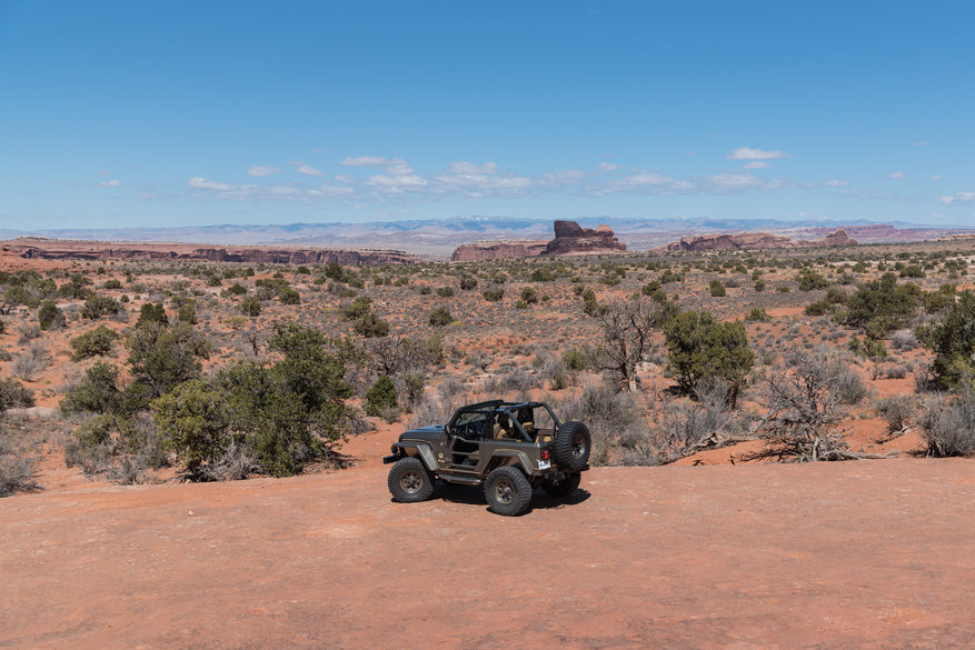 Well, Saturday morning here in Moab, Utah, Quadratec YouTube Personality Rob Jarrell and I somewhat joined that ideal as we piled into our 30th Anniversary YJL, along with social media coordinator and photographer Brooke Smith, and headed north of Moab for Sevenmile Rim. Siri cackled that it was a balmy 35 degrees in Moab as we pulled on to US 191.