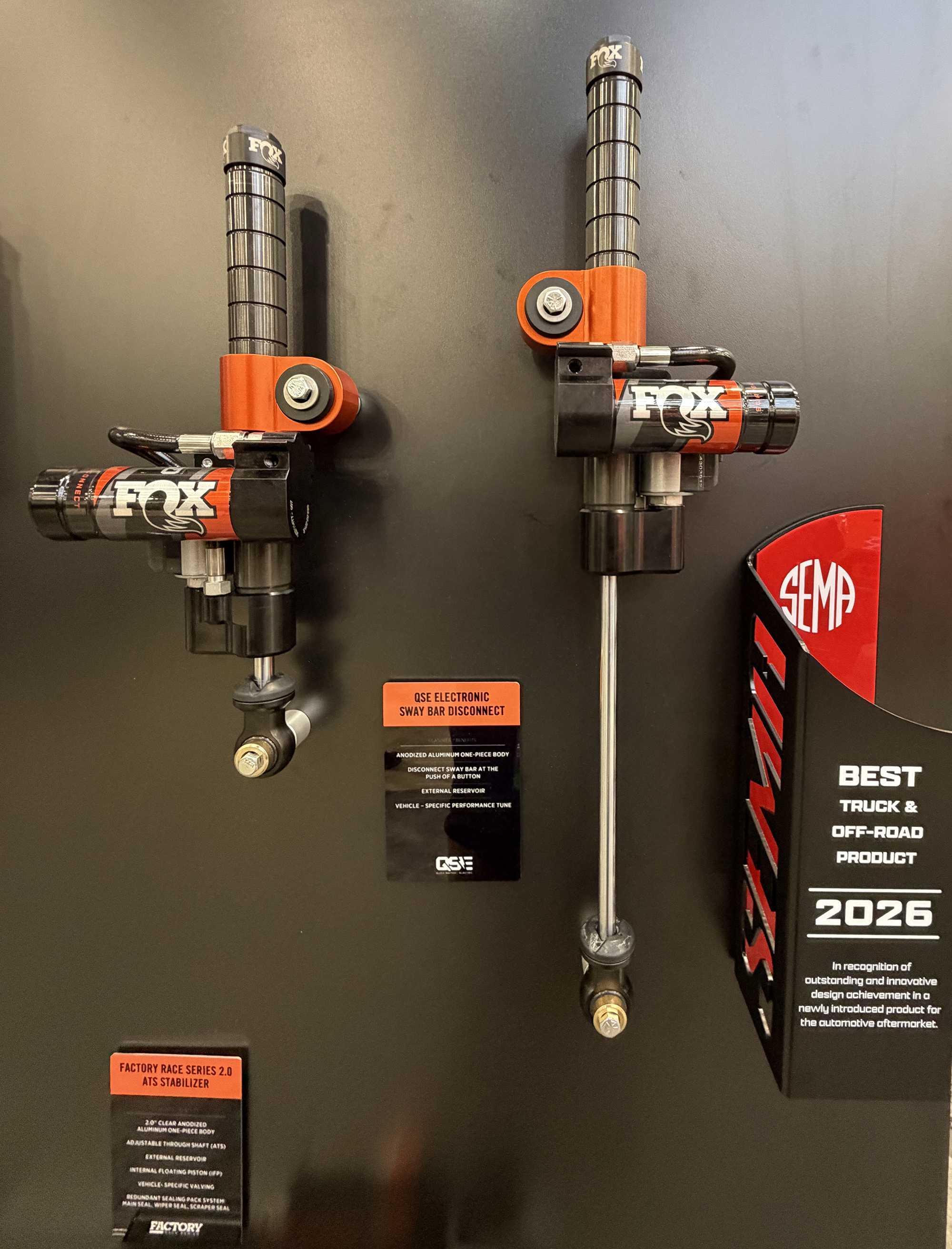 Fox says the product’s digressive tune will provide excellent stability while the sway bar is disconnected. At the same time, one-piece aluminum spherical bearings, along with their machined aluminum body and chrome shaft, will offer superior durability and corrosion resistance.
