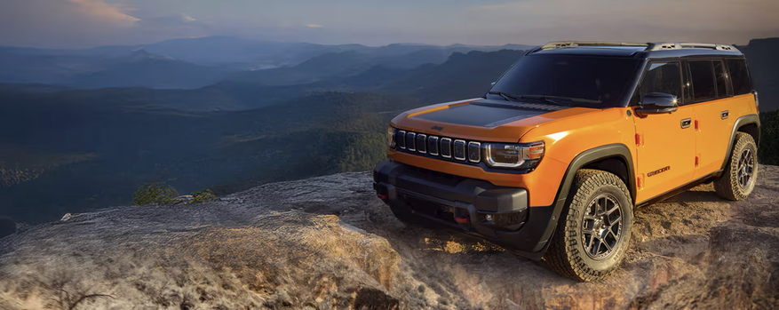 Designed on Stellantis’ STLA Large platform, the Recon pairs rugged, Wrangler-inspired styling with EV propulsion. Though exact specs remain under wraps, early reports suggest a range of around 350 miles, removable doors, all-terrain tires, and full off-road capability.