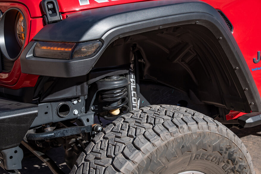 At the heart of the kit are Teraflex’s Falcon SP2 2.1 monotube shocks. These shocks are adjustable, giving owners the flexibility to switch between soft and performance settings depending on terrain or daily driving needs. Paired with progressive-rate coil springs, the ST2 kit delivers a controlled and stable ride on the road and predictable articulation on the trail.