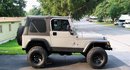 It's a 2001 60th Ann. TJ. Mods are exclusively Quadratec! Fabtec 4" basic lift, 33x10.5 Thornbirds, 15x8 soft 8's, OE style flares, Rugged Ridge headlight guards,Kentrol taillight guards, Tomken stubby bumper, Optima red top, home made mirror movers, home made rocker guards. Thanx Quadratec!!