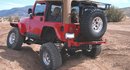 My name is Chuck and I live in Prescott, Arizona. I bought the jeep in Aug of 07. It had a mismatch of lift parts that didn't last long. It now sits on a 5.5" Rubicon Express Long Arm with Tri-link. RE Monotube shocks, Warn Rock Crawler bumpers front and rear. Warn skids for the steering box and diffs.. A to Z Fabrication rocker guards.. Goodyear MTR 35x12.50Tires with 4.88 gears and Auburn Gear E-cted Lockers front and rear. Tire coverage is via Xenon 6" flat fender flares. Breathing is through a Banks Ram-Air intake system and exits through a custom exhaust system. Other mods include moving the rear spring pads back on the frame for a better spring alignment... rear shock mounts moved to increase wheel travel and clearance. Still to come is a 4.1 transfer upgrade and disc brakes for the rear.