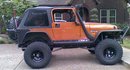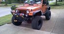 Rubicon Express 4.5" Long Arm with ACOS in front and Nth Degree Rear Spring Relocators, and Shock Shifters in back - total of 6" of lift, Mas Grande shaft kit (35 Spline Alloy USA) and ARB locker on D44 rear, Superior Evolution Series (30 spline) with ARB locker on D30 in front running 4.88s, Tom Woods CV driveshaft on a Advance Adapters SYE kit, M.O.R.E. 1" puck body lift kit O.R.O. U-Steer steering system and Sway-Loc Dual Rate Sway bar system, Poison Spyder Customs Tail Stinger/Tire carrier on PSC Trail Corners. Big Daddy Off-Road Rocker Guards, Xenon Flat Flares, Home made Front Trail Stinger (modeled after PSC's Trail Stinger - I made it when they went out of business) Rokmen Winch mount with RE hawse fairlead, home to a Warn M8000 winch' KC Hilites and a synthetic rope, ARB snorkel and PowerAid Throttle Body Spacer' B & M short throw shifter, Pioneer XM, Amps and Cadence 12" sub. Just replaced old soft top with a Rampage Frameless Top. Mickey Thompson Baja Claw Radials 35 x 12.5 on 15 x 10 Cragar soft 8 Steel Wheels