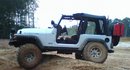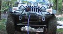 This is my 2003 Rubicon. It has a 4.5 Rubicon Express lift, ORO u-turn steering kit, 15x8 American Racing Bajas, 35x12.50 Goodyear MTRs, Advanced Frame Works winch bumper, Warn M8000 winch, Garvin Industries Wilderness swing away tire carrier with Hi-Lift and Blitz can, Tuffy overhead and center consoles, Warn 7inch flares, Hurst short throw shifter, Black Diamond steering stabilizer, Rustys lower control arm mounts, Currie lower control arms skids, waterproof seat cover, head light and tail light guards, Best top SunRider soft top, K&N air Filter, KC windshield brackets with Day-lighters, and custom pinstripes thanks to trees and branches.