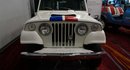 One of approximately 100 original Hurst-modified Jeepsters, this restored example features the 225 cubic inch Dauntless V6 engine, the TH400 automatic transmission, and a number of Hurst badges. Other features include the red and blue stripes over champagne white paint, and unusual looking hood scoop with a built-in 8,000 rpm tachometer, and a Hurst dual-gate shifter.