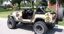 It sports a 50 Cal. ammo box for a center console and a dummy hand grenade for a shifter knob. It is a copy of the Jeeps the Allied Soldiers used in WWII ( Italy/ North Africa Campaign ) complete with a Anti-Decaptation Device (see Front Photo )