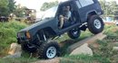 This is my 1990 Jeep Cherokee Laredo. I bought it 2 years ago from the original owner without any prior modifications with the intent of building a street-able rock crawler. I have since then swapped in an hd44 front and a dana60 rear with lockers and 5.38 gears at both ends. 6" 4link longarm lift with an overall 5" wheelbase stretch (3in longer in front, 2in longer in rear). 37" Iroks on 16x10 old school steel wagon wheels. Retrofitted new style open cooling system with high-flow intake and exhaust and dual electric cooling fans. Coming soon: 4:1 dana300 tcase and a 4linked rear