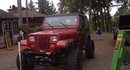 1990 Jeep YJ with a Ford 9in 3:50 gears w factory limited slip rear, Ford HP Dana 44, 3:50 gear open diff front, SOA, custom drive shafts, Ford np205, custom made t case to trans adapter plate, SM 465 transmission, Small Block Chevy 350 bored .030 over, mild cam, Holley 650 carb, ported and polished heads, 33x12.50 TSL SSR’s. Drives great with no no bump steer but still working out the bugs as we go. She is a thirsty girl passing everything BUT the gas station.