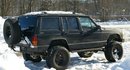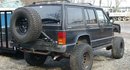 This is my 93 XJ. The previous owner tried to trade this in during the cash for clunkers program... but since it wasn’t registered at the time, he couldn’t do it. It was on it’s way to the crusher when I spotted it on my friends flatbed (he tows junk vehicles). I bought it for $300. As you can see, the front end had damage. Though it’s on the road now (in time for the deep snow of Feb. 2010), it’s still a work in progress. All I’ve done to it so far is to make it road worthy ( straitened front bumper mounts that were bent and had the mount holes torn out). The bumpers that came with it are custom made, as are the rock sliders. The front bumper got a beef-up...that is I extended the mounts, so it will have more mounting points. It also came equipped with; off road lights, poweraid TBS, cold air intake, MSD ignition, 4:11 gears, 33 x 12.50 BFGs, 5in. lift, JKS quick discos, JKS track bar, skid row control arm skids, front and rear diff guards, clarion stereo, new radiator.