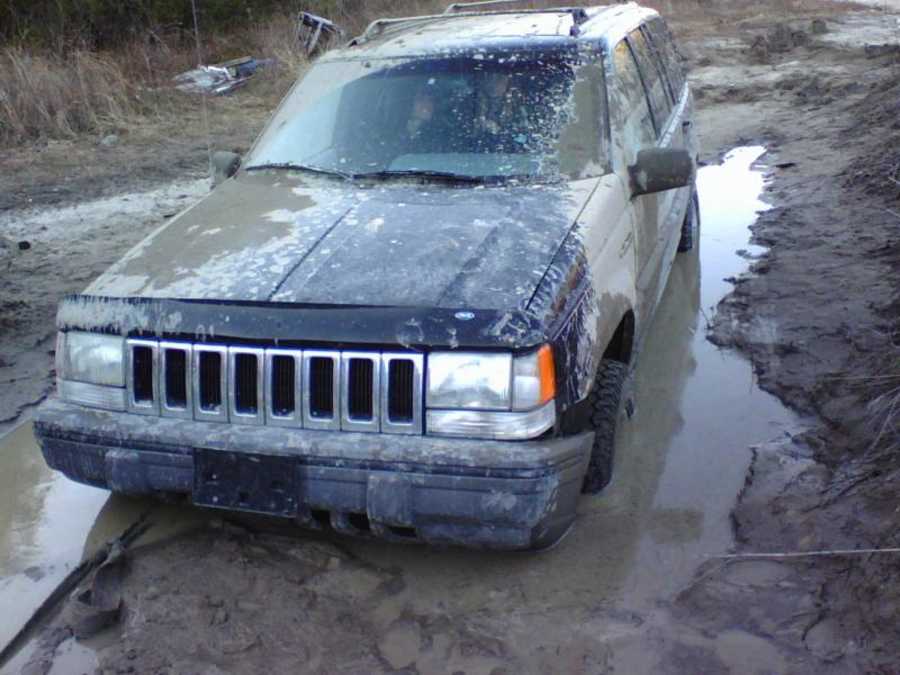 Other than all terrain tires and cherry bomb dual exhaust, this zj is bone stock!! Here she is stuck in some big boys ruts. that's right, down to the frame!!!!! but don't worry future mods will include 4 inch lift, mud tires and who knows what else!!! thanks for lookin