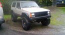 4.0L AX15 5 speed 231 case pacesetter header and downpipe magnaflow cat, dynomax cat back. Rustys Intake and throttle body spacer, 5.5RE short arm lift, d30, 29spline C8.25 w/lunchbox and Grand Cherokee disc brakes, 4.56 motive gears Grand Cherokee steering, durango steering box, hack and tap tcase, Grand Cherokee v8 front drive shaft Auto Cherokee front shaft in rear 15x8 steelies 1.25inch spacers 35x12.5 hankook MT bushwhacker flat flares Thumb throttle on shifter, Woodgrain dash from the junkyard!
