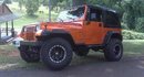 This Jeep came into my step dad's auto body shop after a minor collision with a dump truck. Both fenders, the radiator support and the radiator had to be replaced. I decided to put an inexpensive lift and nice paint job on it. All in all, I've got about 3,500 in it. Not bad for what it is.