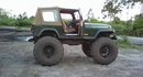 Hi my name is Wayne and i have a 95 YJ. It has 13 inches of lift. It starts with an axle over and 4inch pro comp springs. I put a 3 inch body lift to round it off. I swapped the rear axle to a corp. 14 and a 44HD in the front that i shortened 6 inches. I put a high steer kit and disc brakes on the 14 bolt.It has a stock 4 cyl. and the ax5 that seems to be holding ok. Its got 488 gears and a locker in the rear. It goes to the woods quite often and it does quite well.