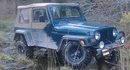 I have a '97 tj se, 5 spd with stock 4.10's. The 4 cyl has E3 DiamondFire Sparkplugs, Accel Plug wires, a K&N air filter, and a MagnaFlow muffler. It has a Skyjacker 2" BB with Skyjacker Hydro shocks, TeraFlex swaybar disconnects, Highrock rear bumper, Hella Driving Lights, Hi-Lift Jack mounted to the stock front bumper, B&M Short Throw Shifter, Bestop Replace-a-Top, Bestop Upper Door Sliders, Bestop Spare Tire Cover, Bestop TrailMax Pro Front Bucket Seats, all in spice, and Wire Mesh Light Guards front and rear. This is an update to an older photo I sent in. Since then I've added 11.50x31-15 TSL LTB Super Swampers on 15x8 Black Soft 8's, a set of Bestop Highrock fender flares, Bestop InstaTrunk, and a MileMarker Winch Mount. I have a really old MileMarker Hydraulic winch out in the shed, but I think I'm gonna sell that and buy an electic winch.