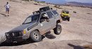 FRONT: 5.5" lift consisting of 3.5" Teraflex coils/Anthony's 2' b-b, Rubicon Express Longarms, Skyjacker ADJ Front Track bar (for TJ), Teraflex (?!?) TJ quick discos up front.REAR Up Country I6 front coils in back w/ Anthony's 1.75' b-b, Currie ADJ Trackbar, Longer swaybar end links, Doesch Tech DT3000 shocks at all 4 corners. - 33-12.50 X-Terrains on 15x8 Ultra 51/50 wheels