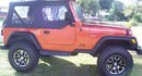 I have a 99 Jeep Wrangler. I put a 4 inch suspension lift and 33x12.50x16's. I have also put an air intake and a double tube front bumper with fog lights,(not shown). Inside is pretty much stock just some speakers and radio. Plans for the future are more chrome and a rear bumper to match the front.