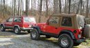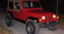 I have a 99 TJ Sport that is red with a tan top. I have a 3" lift on it with 33x12.5x15 Remington Mud Brute tires and 15" AWC wheels. I added the 6" Bushwacker fender flares for a more aggressive look and also added the Warrior Products black diamond plate rocker guards under the doors. I just recently added a Flowmaster 40 series for a louder deeper sound. I added a pioneer cd player too, but the tires are so loud it does not do me much good.