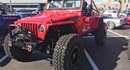 I may be a bit biased because I own a TJ but JCR's Ascender is absolutely stunning and definitely one of my favorite builds. The Firecracker red paint jumps out all the way across the parking lot. Once close enough to get a good look, you'll notice all the subtle accents that set this Jeep apart. From the blacked out American Flag Jeep logo to the tiny spots of red on the spike lug nuts, there is plenty to keep your attention as you look over this Wrangler.