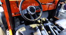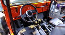 Looking out from the two-inch cropped windshield, the driver and passenger are perched in custom Viper seats featuring concept seat risers. The cockpit is surrounded by a custom-built roll cage, mandriI-bent to match the windshield surround. A bikini top netting offers shade and coverfrom the elements. The center of the custom steering wheel, stamped with the special 50th Anniversary Moab Easter Jeep Safari logo unveiled by the Jeep brand earlier this year, reveals the CJ66’s Moab-inspired origins.