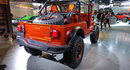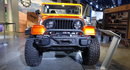 The narrow-bodied Jeep CJ66 harnesses horsepower with a six-speed manual transmission. A Mopar engine cover shelters the powerplant and a Mopar cold-air intake and Mopar cat-back exhaust bump up off-road performance a notch or two. Front and rear Mopar Dana 44 crate axles help the Wrangler easily crawl over rocks and boulders.