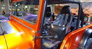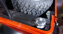 The Copper Canyon skin is highlighted on both sides with a custom matte-black CJBB graphic stripe that runs along the side of the hood. The concept hood, bezel and latch are also colored matte black, along with the iconic seven-slot Jeep grille and bezels of the Wrangler JK headlamps. MOPAR LED amberfog lamps and a MOPAR Warn winch, with a fairlead adapter to guide the winch cable, augment the CJ66’s off-road capabilities. The custom, race-car inspired fuel filler cap is shifted to the inside fender wheel well.