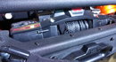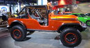 A concept two-way air system allows off-roaders to quickly air up or air down tires to the desired pressure. Oversized, concept fender flares offer defense against trail obstacles at the front and rear, with added protection delivered by Mopar 10th Anniversary Wrangler JK Rubicon Bumper Kits, JPP skid and front bumper plates and concept JPP rock rails custom cut to fit the Wrangler CJ body.