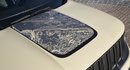 The Desert Tan exterior features a Jeep Performance Parts body decal, a topographical hood decal that depicts the Fins and Things Moab trail, off-road rock rails and a skid plate kit. Also featured are Mopar’s trailer hitch receiver and roof rack.
