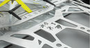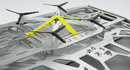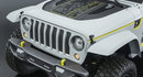 This high-tech, Wrangler-based concept features a translucent hard-top roof panel, two-level aluminum cargo rack with incorporated drone, a raked windshield, boatsided rocker panels, LED headlamps, and custom LED tail lamps and parking/turn lamps.
