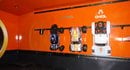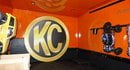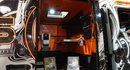 This toy hauler is amazing. It's built with 39-inch tires and rides on a 4 wheel drive Isuzu NPR chassis. There are five jump seats up front to keep you in place when things get nuts. Overhead flat screens provide the entertainment for the rear passengers. In the back, there's plenty of room for gear. Bikes go on the roof. Coolers are on built in slides in the rear. A grill slides out of the side, just because. Every detail about this vehicle is jaw dropping.