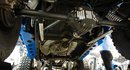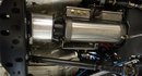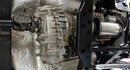 Underneath, there are two silver cylinders, a short one and a long one. The longer one is the electric motor. It sends power into the smaller cylinder which is a gearbox. Finally, the power is delivered into the Rubicon's NV241OR transfer case which splits the power to the front and rear axles.