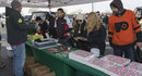 PHILADELPHIA—So what, exactly, does 81 tons of food look like? Well, it looks like Samantha Bell and husband Tom, who organized a Pay Pal account to collect over $2,000 in donations to purchase food items for Saturday's inaugural Phil-A-Trunk event in South Philadelphia. Or Ryan Stone, who hooked up a trailer packed with food to his Jeep and rolled it through the drop off line. Or another Ryan, this one Ryan Cathrall. He stuffed the back of his Willy's JK Wrangler full with all kinds of food. So much so that the vehicle jumped up over a foot when all that food was unloaded.