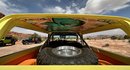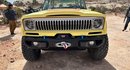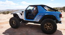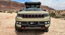In the rear, instead of a traditional bed, the vehicle contains a painted lugged rack to handle cargo and is finished off with 20-inch wheels and 40-inch tires.