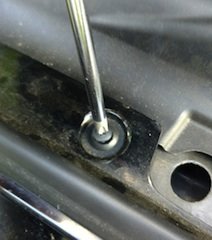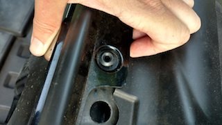 First, remove the front grille. Remove all eight fasteners across the top of the grille with a trim tool or a Phillips head screwdriver (depending on which type you have).