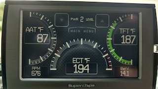 While checking the ATF operating temperature during normal driving conditions with a Superchips Trail Dash, the factory temperature sensor regularly read close to 200 degrees Fahrenheit in stop-and-go traffic. At higher speeds, the temperature does drop as more air flows through the radiator - but during a recent rafting trip to West Virginia, the temperature shot above 225 degrees for several minutes while slowly driving up mountain switchbacks, even though it was only 70 degrees outside. So it’s not hard to see what low speed, high load conditions experienced in trail crawling could do - particularly in the hot summer months. The eventual addition of off-road bumpers and armor will only serve to make this condition worse. While the actual ‘unsafe temperature range’ is something worth arguing about in the world of internet forums, I think everyone will agree that cooler overall temperatures can prolong transmission internal component life. At sustained temperatures above 220 degrees, the ATF+4 starts to break down at a much higher rate.