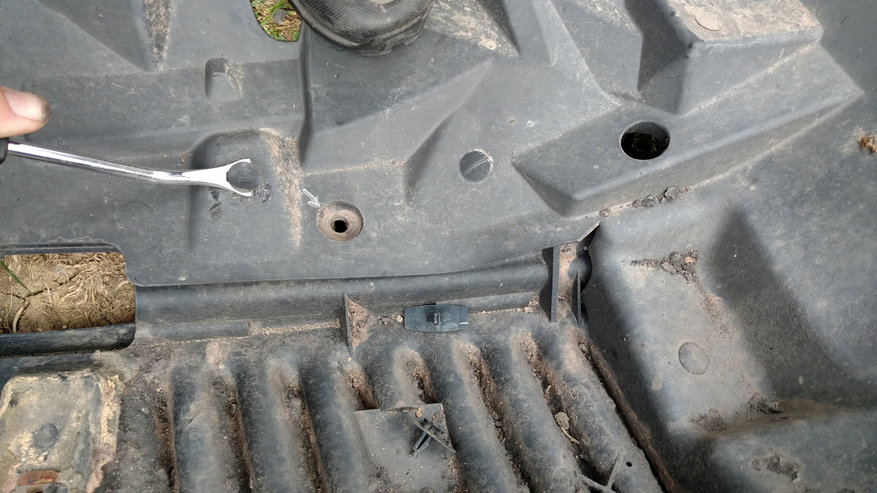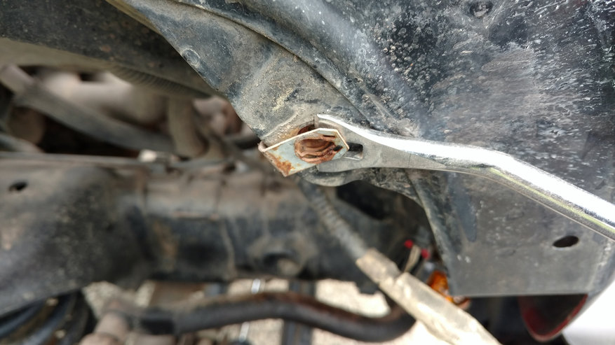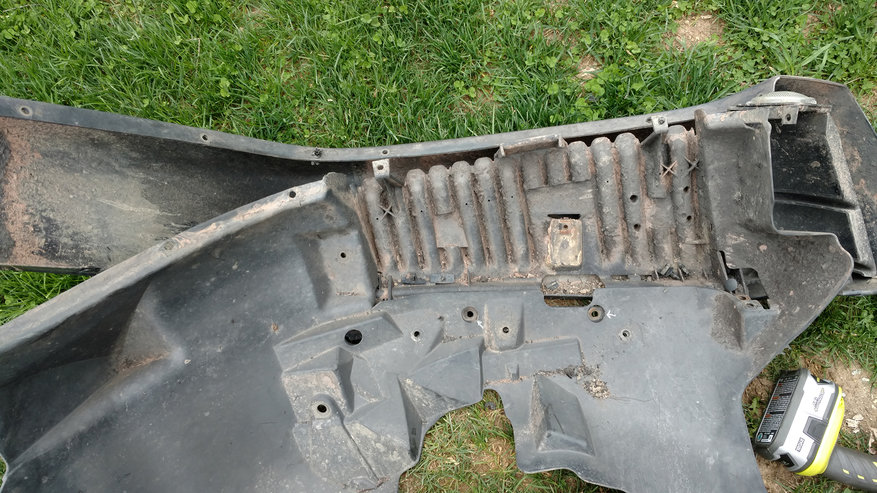 Remove the remnants of the plastic clips from the body, as well as the steel spring clips up towards the front and on the fender support bracket.