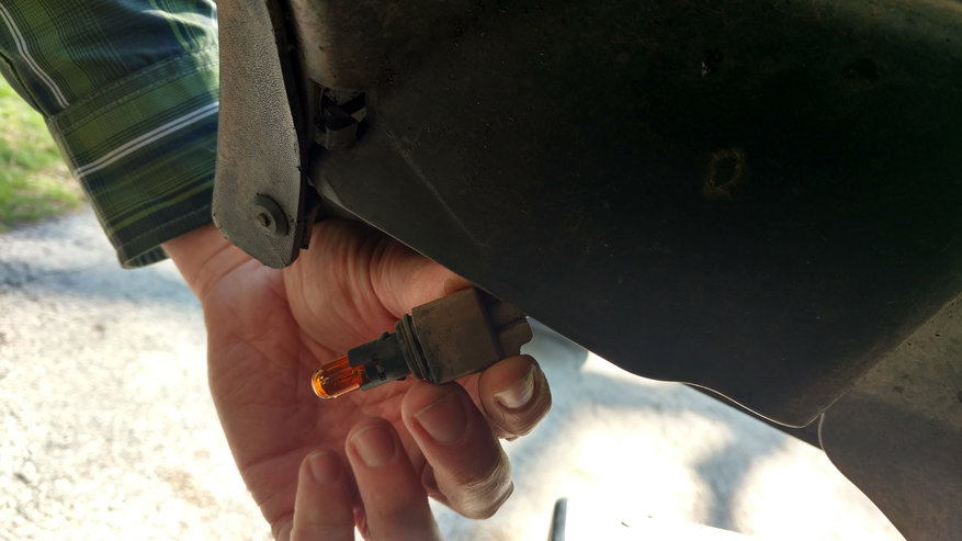 Since the new light is an LED, and the original was incandescent, the polarity has to be correct. In my case, both connections were “black to white”, but I have heard of other installations being the reverse. Once the flares are installed, the wires cannot be easily switched, so check them before you put everything together. Install the LED lights in the front fender flares using an 11/32” socket, a long extension (or nut driver) and a #2 Phillips head screwdriver.
