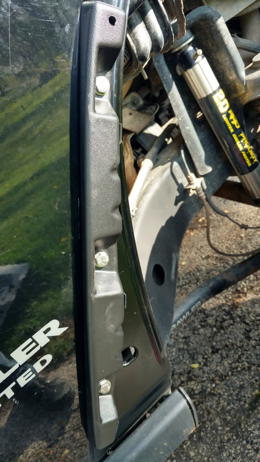 When your liners are clearanced to the point that the Bushwacker flares fit snugly, move on to installing the fender supports. Make sure all the spring clips are in place before attaching these as I mentioned earlier.