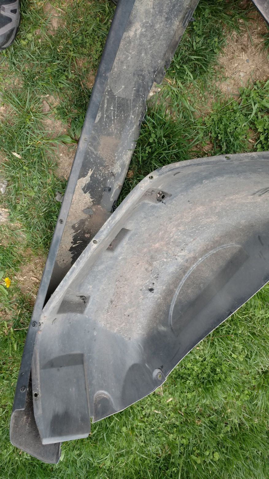 Removing the factory flares and fender liners is a fairly quick task. They come off the body attached to each other, but will then be split apart for trimming.