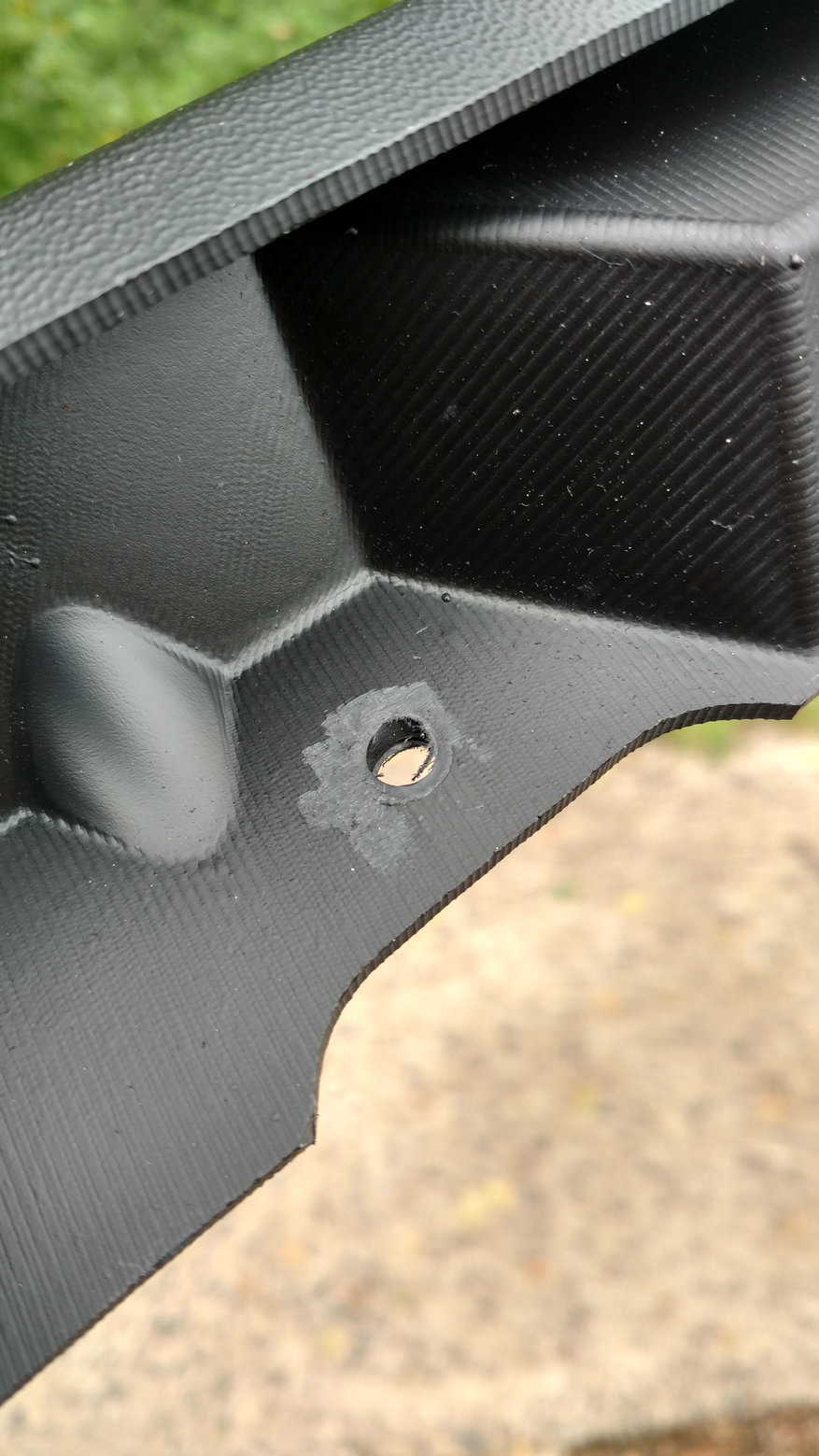 Two spots of the rear flares are cut to leave mounting ears in place, and a hole in each must be modified for a perfect fit. This is detailed in the provided instructions, but the end product looks like this:
