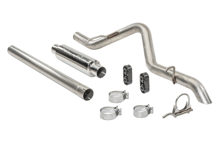 Pypes' High Clearance Cat-Back is designed to clear most aftermarket suspensions by relocating the muffler forward of the rear for spirited off-road use without the fear of damaging the exhaust. It also uses 304 stainless which will help resist corrosion and keep that kit on your vehicle for as long as you want. Installation, once you get your factory exhaust off, is fairly straightforward and everything you need to install comes with the kit.