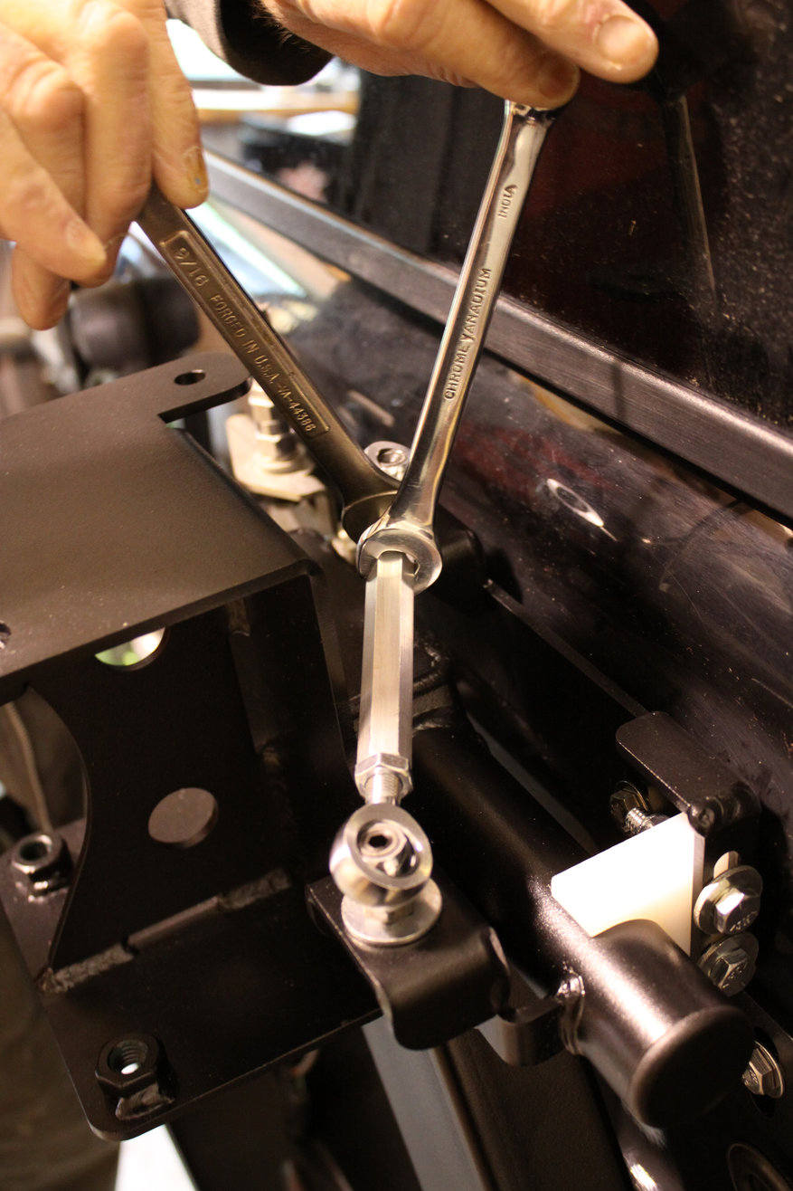 Install the first ball joint rod end on the rear bracket with the supplied hardware.