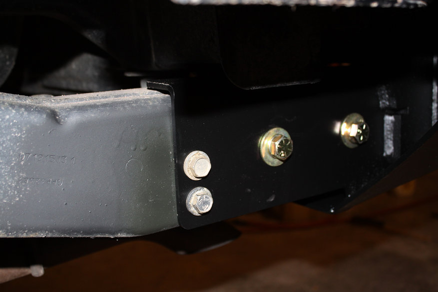 If everything looks good, install the provided grade 8 bumper bolts (2 per side) and the factory bolts you earlier removed from the frame. Don’t tighten anything fully at first, as you may need a little wiggle room for final alignment.
